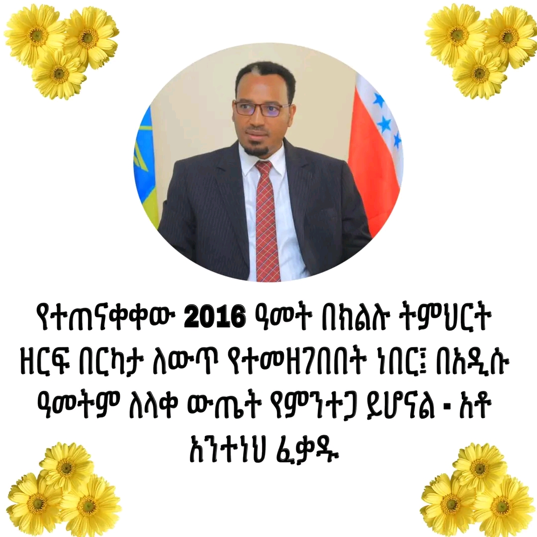 የተጠናቀቀው 2016 ዓመት በክልሉ ትምህርት ዘርፍ በርካታ ለውጥ የተመዘገበበት ነበር፤ በአዲሱ ዓመትም ለላቀ ውጤት የምንተጋ ይሆናል-አቶ አንተነህ ፈቃዱ